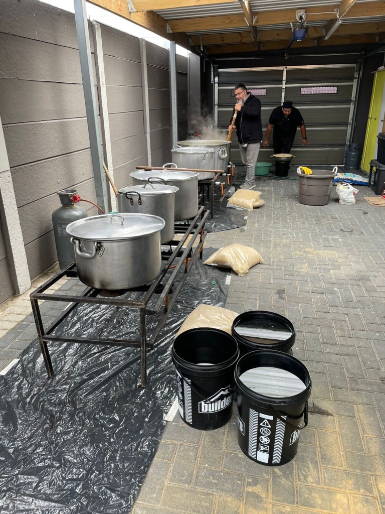 Today through the grace of the Almighty we were able to cook for three organisations/communities, Beitul Aman old age home in Wynberg, Vrygrond Community and the Khayelitsha community. Just over six months ago we started with cooking a 100 litre pot feeding on average 300 mouths and have grown to date to six pots 420 litres in total feeding approximately 1,000 mouths.