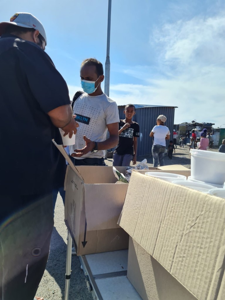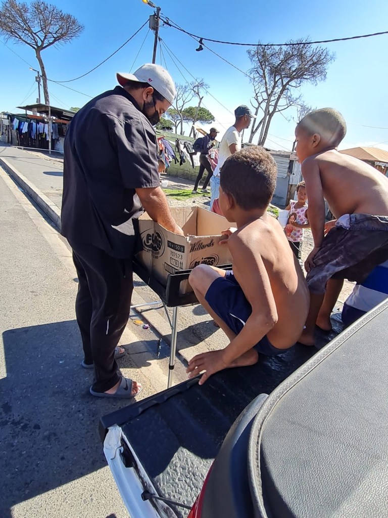 Below are some pictures of yesterday’s feeding of Beitul Aman and CPOA Silvertown Old Age Homes, the feeding at Pooke Road and The Vlei informal settlements and the feeding in Lentegeur where kids went door to door to distribute food to families in the area.